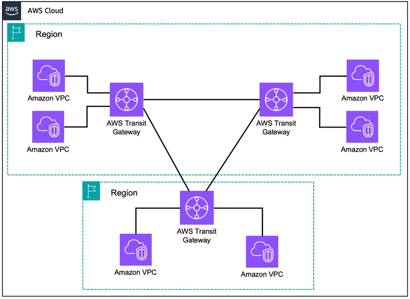 - AWS Transit Gateway – Central hub for connecting multiple VPCs and on-premises networks